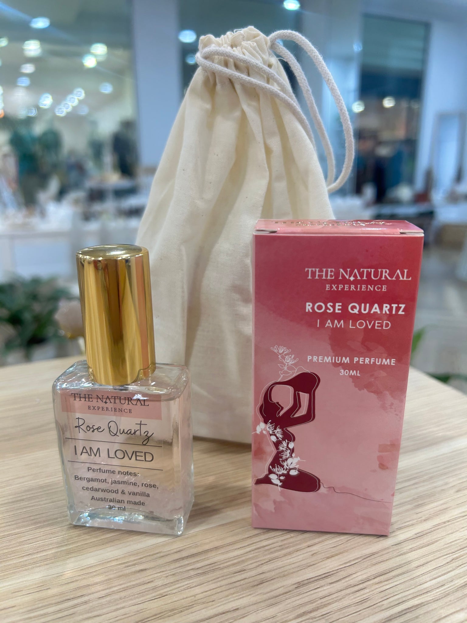 Elevate your senses with our enchanting perfume, infused with the soothing energy of rose quartz and the empowering affirmation 'I am loved'. Delight in the harmonious blend of bergamot, jasmine, rose, and geranium, creating a floral bouquet that captivates the soul. As the fragrance unfolds, notes of amber, vanilla, tree moss, and cedarwood add depth and warmth, enveloping you in a comforting embrace. Experience the power of love with every spritz, as this luxurious perfume fills your heart and surrounds you with feelings of affection and tranquillity.