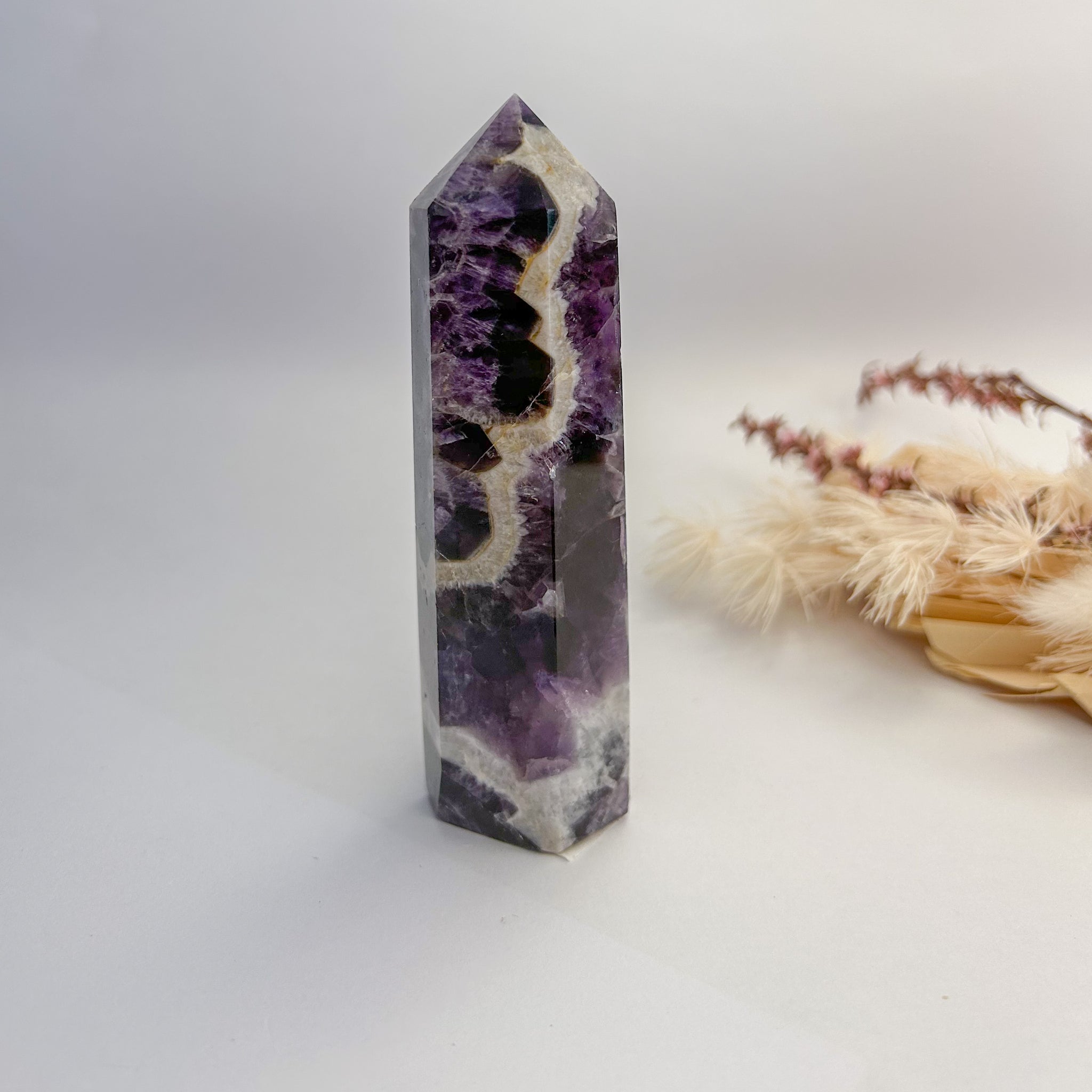 Combines the high spirituality of Amethyst, and the gentle support of White Quartz, creating a unique energy of self-reflection and growth. Gives one the courage they need to follow their spiritual callings in life. Promotes a deep and restful sleep, making it beneficial for those who suffer with insomnia and an overactive mind. Protects one from negative energy, evil spirits, and psychic attacks.